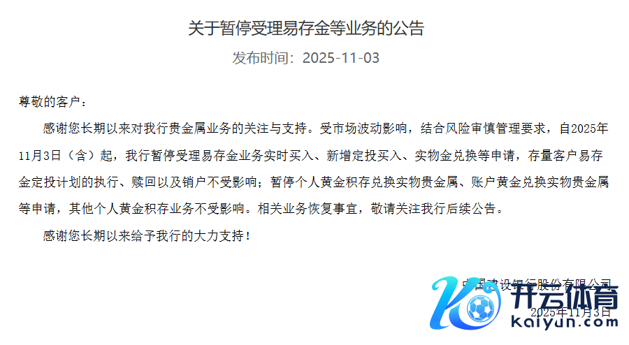 建造银行:暂停受理易存金等业务建造银行:暂停受理易存金等业务