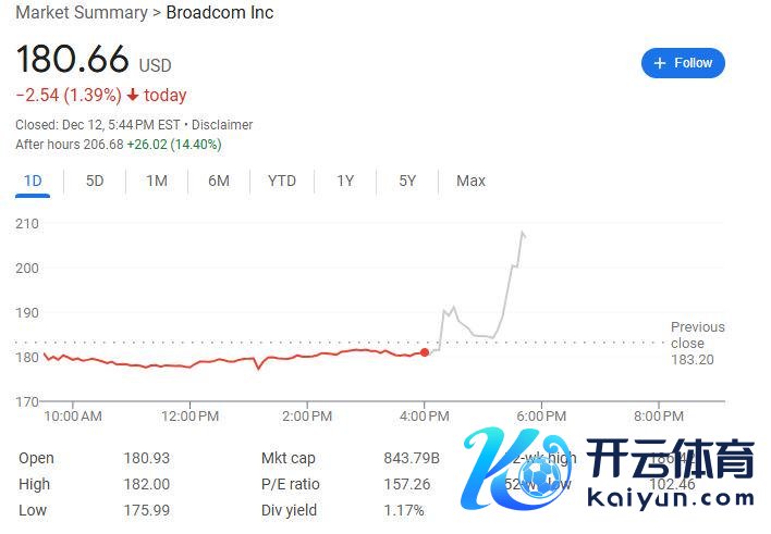 12月12日周四好意思股盘后,博通发布了限度11月3日的公司第四财季财报云开体育,由于刚罢了的财年AI收入同比增长220%达到122亿好意思元,且下一财季营收教唆稳当预期,盘后一度涨近5%。