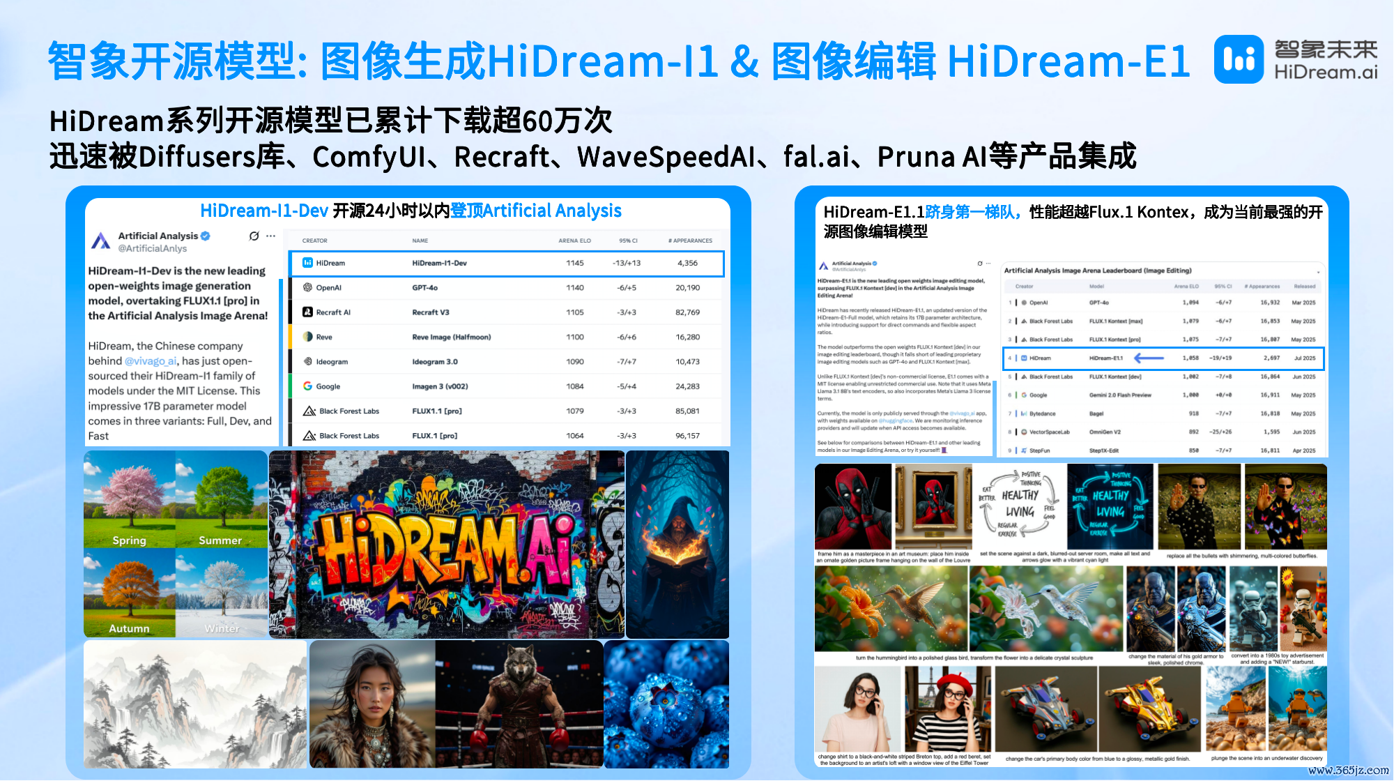 7月,继问鼎图像生成开源模子竞技场榜单后,最新开源模子HiDream E1.1再次强势置身Artificial Analysis图像编订智能体榜单第一梯队,动作首先的开源图像编订模子,性能全面稀奇Flux.1 Kontext等主流模子,支握当然话语驱动的图像编订 —— 用户通过翰墨教唆即可完成布景替换、神采修改、局部重绘等操作。