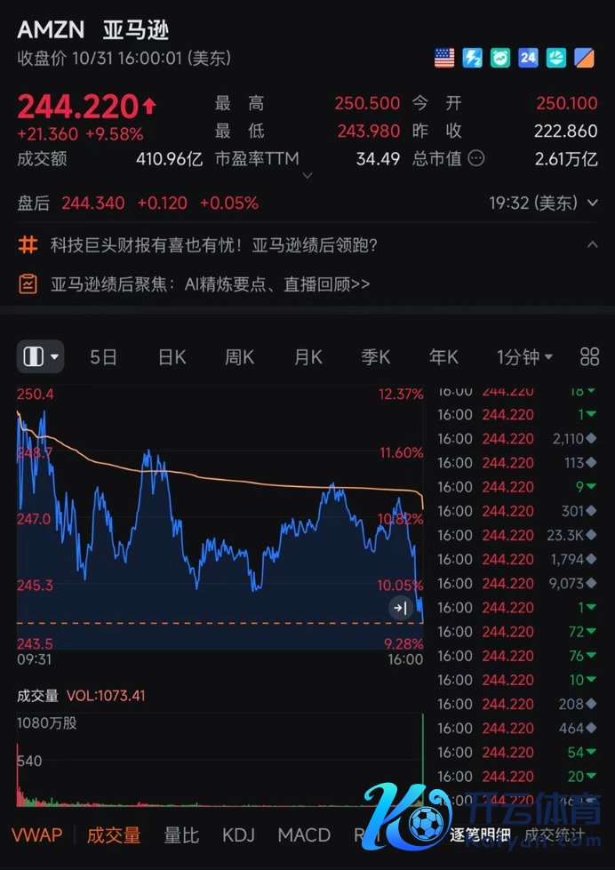 当地时代周五,好意思股科技巨头亚马逊开盘涨逾12%,最终收涨超9%,报244.22好意思元/股,股价创历史新高。