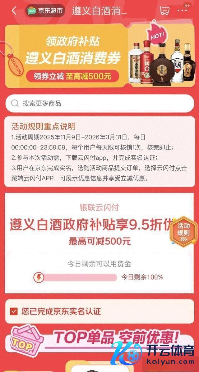 参与状况极为浅薄,行径工夫,用户只需登录京东APP,在搜索框中输入“遵义耗尽券”、“遵义白酒耗尽券”、“悦.遵义电商耗尽券”等任一要害词,即可直达行径专区,自便选购中意酒品。